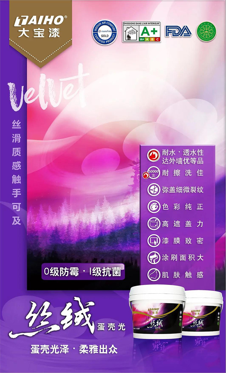 1、蛋殼光澤:科學配方技術、特殊原料配比,搭載獨特工藝研制。使產品涂刷后墻面呈現絲絨般的觸感和蛋殼般的柔和光澤,給居室帶來別樣的調性和品味。