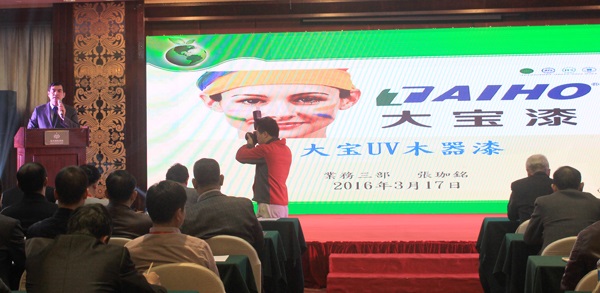 隨后,大寶漆經(jīng)銷事業(yè)部高顯峰課長、張珈銘專員、胡平平課長、鄧偉利專員分別對(duì)“三三專案”歐式涂裝、UV木器漆、水性木器漆及寶宮石相關(guān)產(chǎn)品內(nèi)容向大會(huì)作報(bào)告,其中胡平平課長所作“漆時(shí)代‘水’做主”的主題演講成為本次研討會(huì)的重點(diǎn)與亮點(diǎn)內(nèi)容。