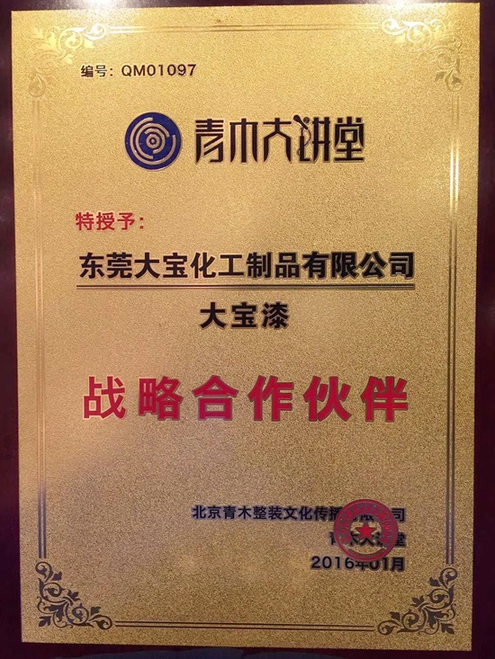 東莞大寶化工葉子琛執(zhí)行經(jīng)理等代表大寶漆應(yīng)邀參加大會,東莞大寶化工黃文敏高專向大會作“歐式工藝,創(chuàng)新價值”的主題演講,受到大會的關(guān)注,同時大寶漆成為青木整裝“戰(zhàn)略合作伙伴”,繼2015年后大寶漆再次榮膺青木大講堂“木制品涂料工藝榮譽(yù)顧問”。
