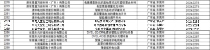 近日,廣東省高新技術企業(yè)協(xié)會正式公布了2024年廣東省名優(yōu)高新技術產品名單。大寶漆的三款產品——低色素耐黃變PE透明底漆、環(huán)保型高韌性水性木器涂料和抗腐蝕金屬電鍍防護涂料成功上榜,彰顯了企業(yè)在科技創(chuàng)新和產品質量方面的卓越實力。