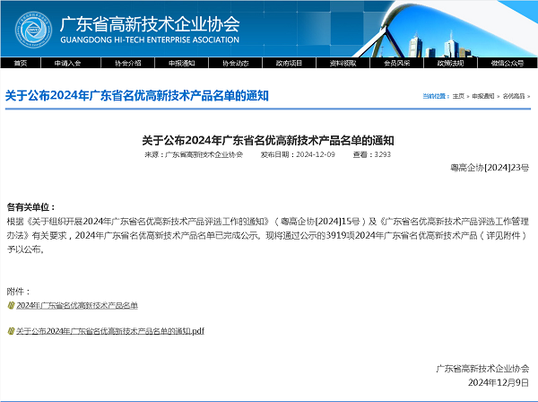 實力見證|榮登2024年廣東省名優(yōu)高新技術產品榜單