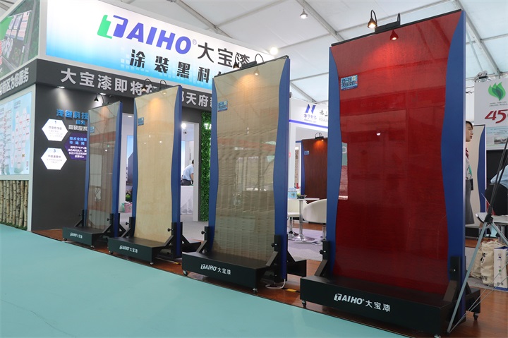 大寶漆作為國家高新技術企業,緊扣“涂裝黑科技”的主題,在成都家具展重點展出了公司最近幾年研發突破的家具漆新工藝,包括:淺色科技木皮耐黃變高硬度系列、1度左右的PU全啞面漆系列、水性雙組份底面著色耐高溫系列、UV底面著色系列和格麗斯著色層次感強系列等,受到了參展的家具廠、涂料同行的關注。尤其是淺色科技木皮耐黃變高硬度系列和1度左右的PU面漆全啞涂裝系列,吸引了不少家具廠企業代表駐足觀看,了解產品信息,紛紛表達了合作意愿。
