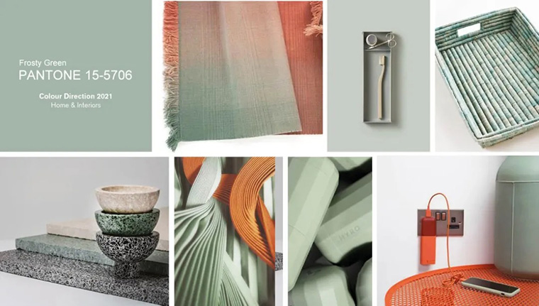 人們越來越關(guān)注產(chǎn)品材料的可持續(xù)性,素食主義和植物性材料的崛起,柔和的中性灰綠色喚起了人們對健康家庭和有意識的消費(fèi)主義的渴望,搭配濃郁的焦糖和棕褐色,柔和的陰影營造出復(fù)古氣息。
