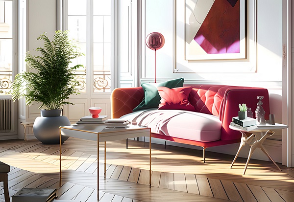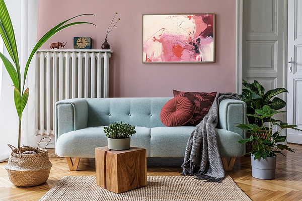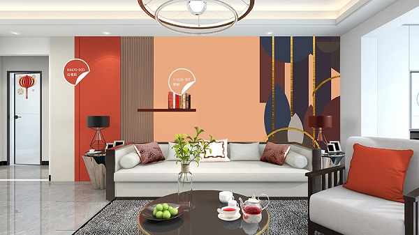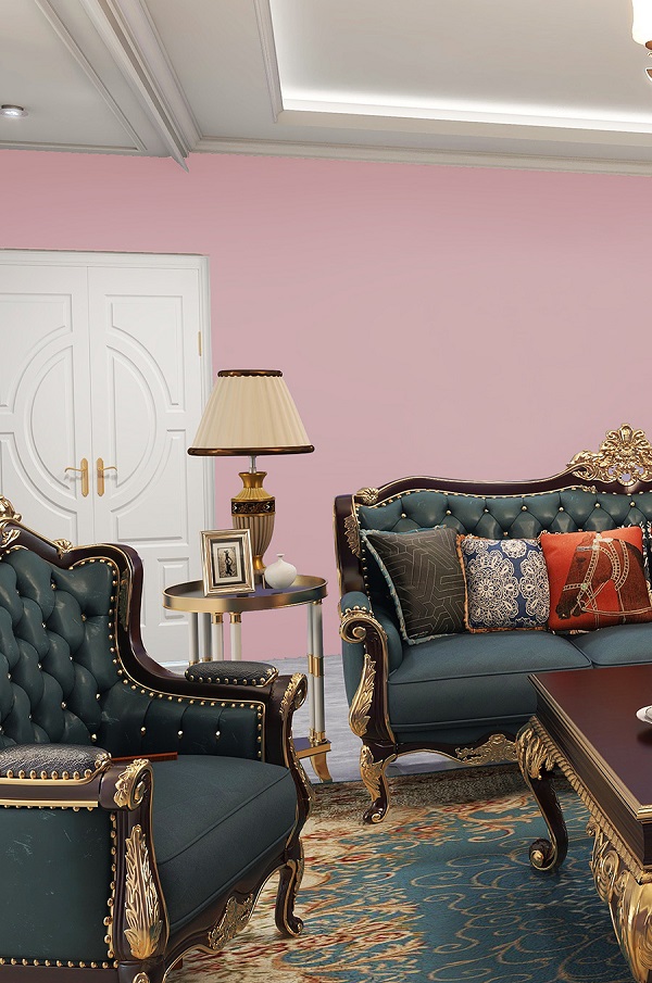 當希望客廳的墻面是空間中的焦點時,以R6520-74P紅薇染露,淺紅色為主體,家具搭配深色系,突出背景墻的核心,淺色能使空間顯得更寬闊,不僅感受到春天的氣息,還為居家生活帶來放松暖心的作用。